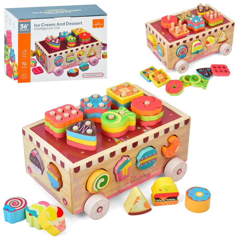 Подаруйте дитині захоплюючу гру 2-в-1: транспорт та навчання! Дерев’яний розвиваючий центр MD 0893 виконаний у формі яскравої машини, яка також слугує функціональним сортером.