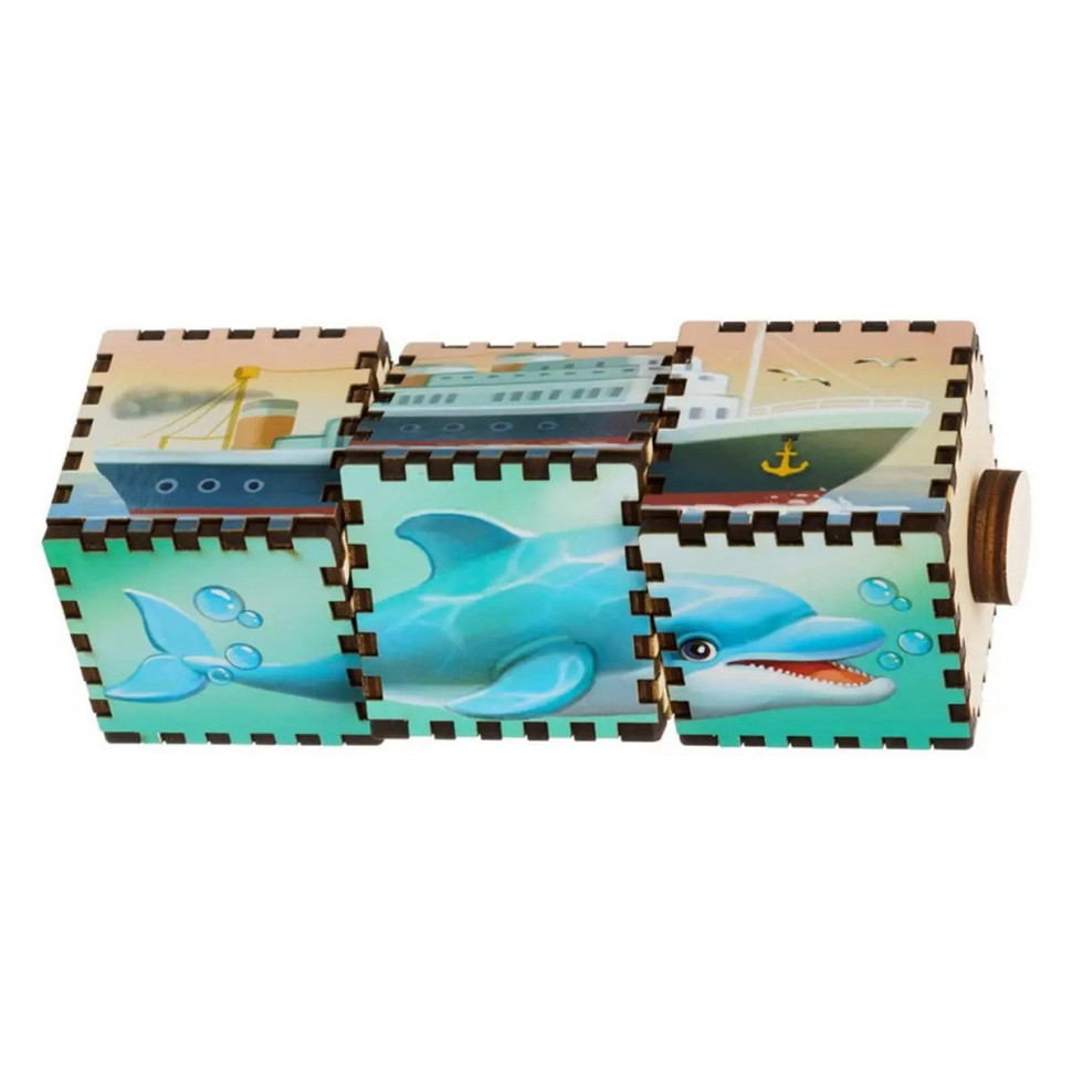 Гра складається з стрижня, на якому розташовано три обертових кубика. Необхідно зібрати кита, дельфіна, акулу і пароплав, покрутивши кубики і вибравши відповідні хвостик, тулуб і мордочку. Кубики відмінно тренують пам’ять, розвивають логічне мислення, увагу і дрібну моторику у дітей.