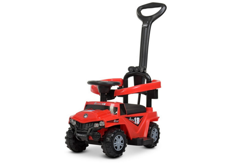 ТИП 2в1 (батьківська ручка) + ГАБАРИТНИЙ РОЗМІР: довжина (машина/з батьківською ручкою) 66см / 82см ширина (по колесам / з підставкою для ніг) 42см / 31см висота до спинки 48см висота до батьківської ручки 90см 0 висота ДО СИДІННЯ 24см ВИСОТА ВІД ПІДСТАВКИ ДЛЯ НІГ ДО СИДІННЯ 16см РЕГУЛЯТОР ГУЧНОСТІ МУЗИКУ ПАДІННЯ + КОЛІСА: розмір,см 15см / пластик ПОВОРОТ КОЛІС БАТЬКІВСЬКОЮ РУЧКОЮ + КОРОБКА (БРУТТО/НЕТТО/РАЗМІР) 4,75кг / 3,9кг / 67-31-31см