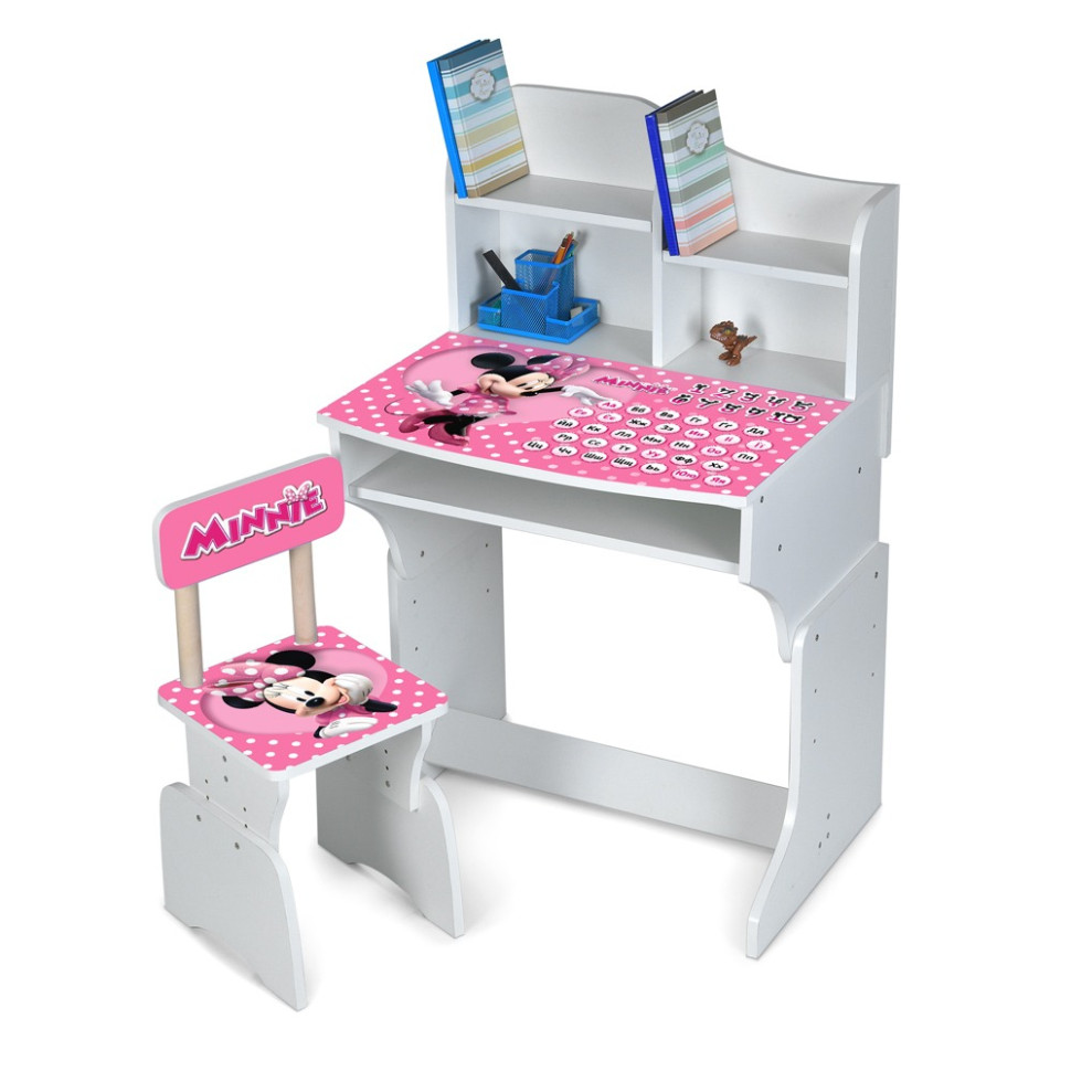 Парта M 904 — ідеальне рішення для маленьких школярів і дошкільнят. Комплект включає компактний дерев’яний стільчик із трьома рівнями регулювання висоти, що забезпечує правильну посадку дитини на різних етапах росту. На парті зображена українська абетка, що сприяє легкому вивченню літер під час занять.