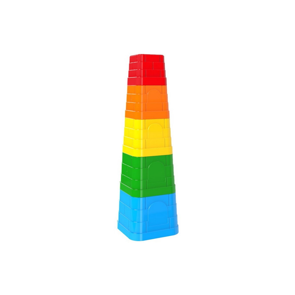 Пірамідка складається з п’яти елементів різних кольорів і розмірів. Рельєф і форма елементів пірамідки імітують вежі середньовічного замку – з вікнами, дверима і кам’яною кладкою.