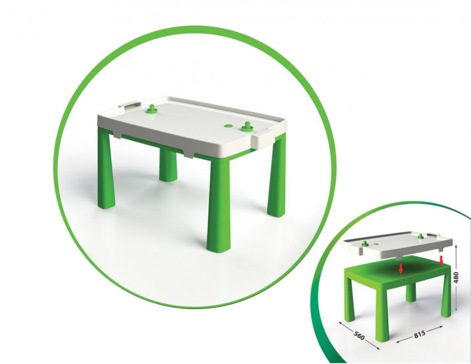 Яскравий, функціональний дитячий столик DOLONI-TOYS для ігор 04580 ідеально впишеться в будь-яку дитячу кімнату і стане незамінним для розвиваючих ігор. Гладка, приємна на дотик поверхню і продумана, ергономічна форма верху виключають ризик травмування дитини. Зручні габарити 56 х 81,5 х 48 см роблять цей столик ідеально відповідним для діток віком від трьох до восьми років. Столик представлений в оновленій серії українського виробника DOLONI TOYS, легко збирається разом з ігровою панеллю для аерохоккея, або як звичайний столик. У комплекті зі столом є 2 біти і 2 шайби для гри. Учасники стають по обидва боки від столу і за допомогою біт для аерохоккея потрапляють шайбою у ворота супротивника. Бездоганне виконання і матеріали високої якості гарантують довговічність експлуатації, завдяки чому столик не втратить яскравості кольору і не деформується після тривалого терміну використання.