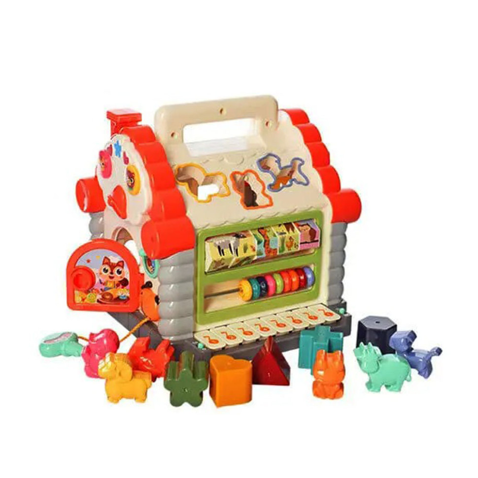 Ще у розвиваючої іграшки Теремок є рахівниця і різнокольорові ромбики. На даху живуть звірята (качечка, півник, корівка, собачка, жаба, овечка). Їх також потрібно сортувати, від чого вони зазвучать.
