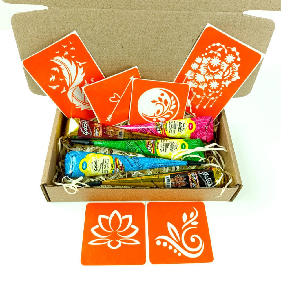 Набір кольорової хни з трафаретами для біо-тату №3 v2 містить: