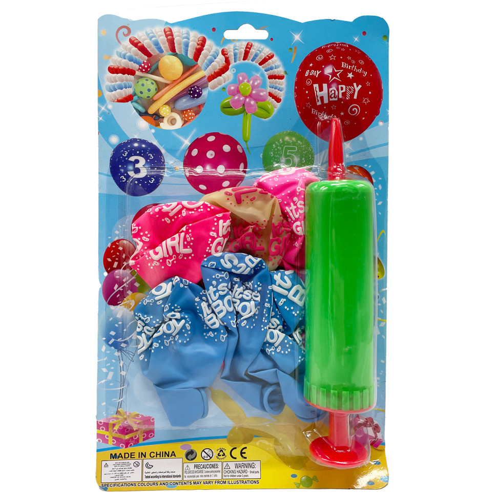 – **6 повітряних куль**: по 3 кулі в кожній тематиці – для дівчинки і для хлопчика. Яскраві та барвисті, вони ідеально підійдуть для святкування народження або Baby Shower.