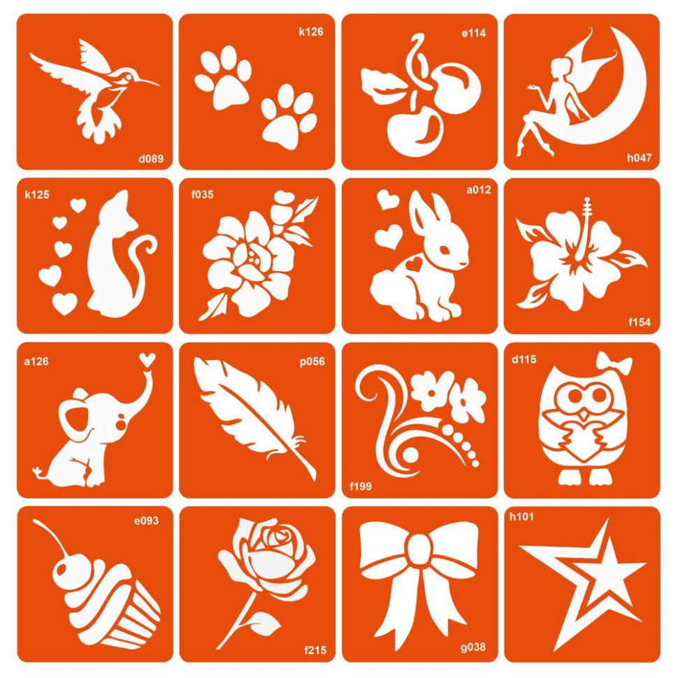 Колекція простих трафаретів для дівчаток, 16 штук у розмірі 6 на 6 см.