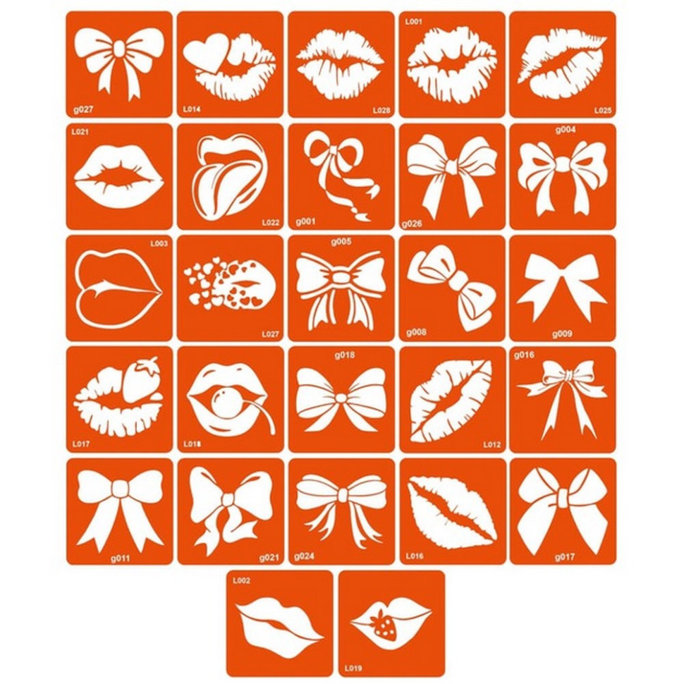 Колекція простих трафаретів бантиків і губ, 27 трафаретів 5*5 см.