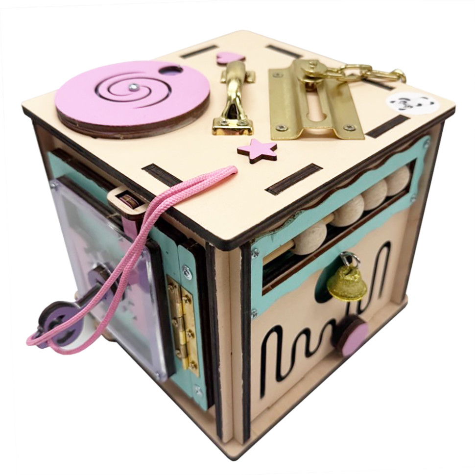 Бізікуб має багато цікавих деталей, що сприяють всебічному розвитку дитини. Він виготовлений із якісних, безпечних матеріалів, що пройшли всі необхідні сертифікації. Усі частини, включно з рухомими елементами, міцно закріплені, що гарантує надійність і безпеку іграшки.