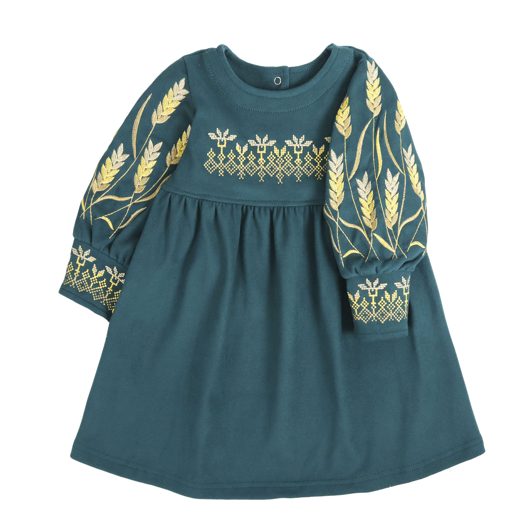 Вишивка золотом нагадує про щедрі поля України, як символ достатку, миру та родинного тепла.