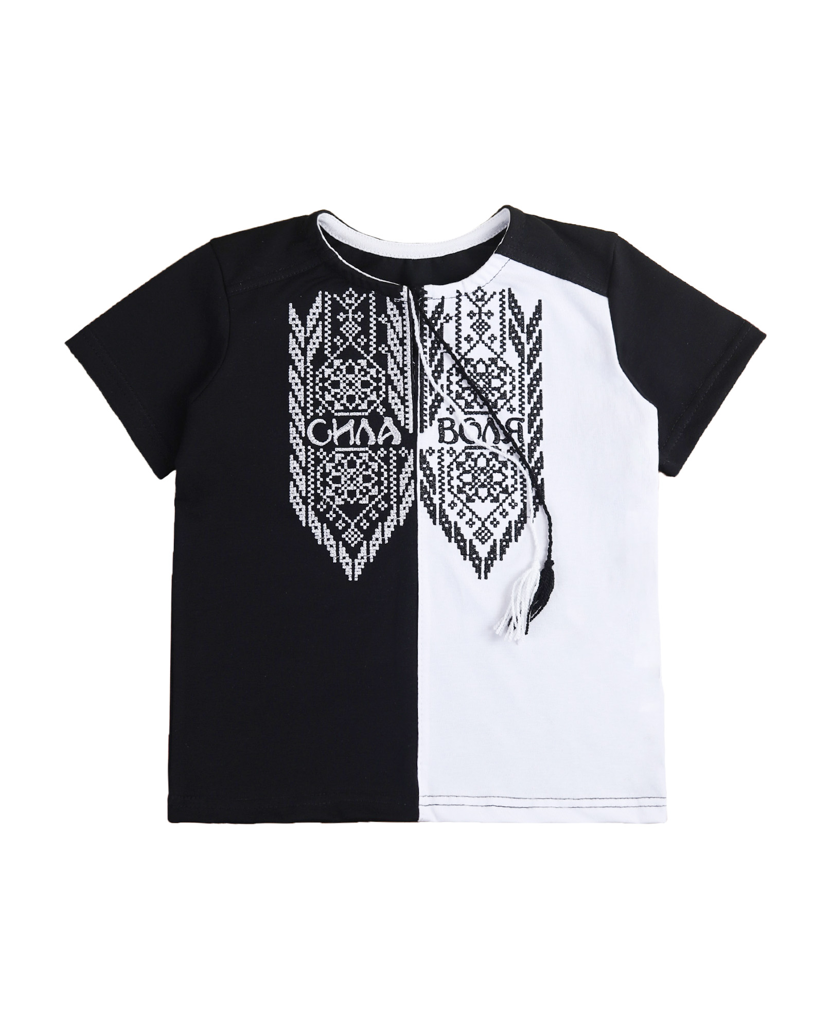 Чорно-біла футболка вишиванка “Сила й Воля”, Білий, 98 (3 роки)